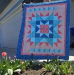 Casa Regal quilt pattern. Hard copy.Throw: 52" x 62".Easy to piece. Flying Geese are made four at a time.Fabric featured on cover is Perennial Garden by Connecting Threads.